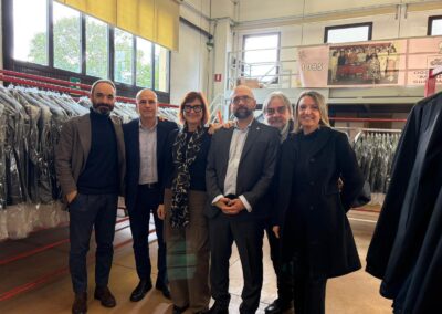 Il Direttore nazionale Andrea Laguardia, il Responsabile nazionale del settore costruzioni, Massimiliano Manuzzi, e la Responsabile nazionale del settore industriale, Francesca Montalti, hanno dapprima visitato la sede della Cooperativa Gommus di Montecarotto – produttrice di suole per scarpe che quest’anno festeggia i 40 anni dalla fondazione – incontrando il Presidente Andy Tarini che ha illustrato potenzialità e progetti in corso; quindi, è stata la volta della Cooperativa Futura 21 di Senigallia – composta da 25 donne che si occupano della produzione di capispalla per grandi brand italiani ed europei e che compie anch’essa 40 anni di vita – il cui Amministratore delegato, Savino Sofia, e la Presidente, Paola Diambra, hanno avuto modo di confrontarsi sui temi delle sfide del mondo tessile nella competizione globale.