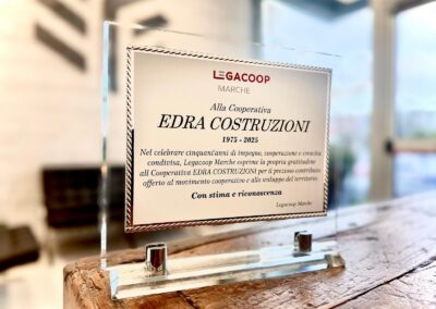 Infine, è stata la volta della visita presso la sede della Cooperativa Edra Costruzioni di Senigallia, dove i rappresentanti Nazionali, nell’incontrare anche il Presidente di Legacoop Marche, Gianfranco Alleruzzo, e il Coordinatore, Simone Cecchettini, hanno consegnato la targa celebrativa di Legacoop Marche al Presidente di Edra, Gabriele Gentili, insieme ai componenti del CdA, per celebrare il raggiungimento di 50 anni di attività. La premiazione è stata occasione per un confronto su una strategia d’impresa, perseguita con grande vigore da Edra, fortemente orientate all’innovazione.